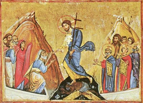 Сошествие во ад. Миниатюра из Евангелия и Апостола, XI в. Пергамент.